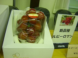 今日は事件がありました。誰も行きたがらなかったイベントがあってめぐりめぐってうちが行くことになったのですが(私と息子は乗り気まんまん)、行ってみたらなんとあのひと房最高和倉温泉 加賀屋ご祝儀価格10万円ついたルビーロマンの試食会だというではありませんか。(知らずに参加)[石川県産] 国内最大級 甘くジューシー ルビーロマン プレミアム 1房入 化粧箱 9月10日まで¥52500ひと房平均2万から3万円で出回ってるそうです。大体ひと房30粒ほどだそうなので、一粒1,000円参加料ひとり500円でケーキ食べ放題、ジュース飲み放題、ルビーロマン2粒、その他16種類のぶどうの試食。大満足です。ルビーロマンは一粒ずつ食べて義父と義母に持って帰りました。義父は1万円ほどなら一回買ってみるかとかって初セリ前に話してましたが、現実その3倍。すっかりあきらめていた状態だったので、喜ぶだろうと私もテンション2粒なんてって思われるかもしれないけど、販売直後は皆さんひと房買って一粒ずつご贔屓さんに配るんだという話がよく出回ってました。今はそういう状態のぶどうです。味はというと、巨峰のようにほんとに強い甘みではなくあっさりしながらも強い甘み。食べやすかったです。そして何よりもありがたかったぁ700房も出回ってないんだとか説明がありました。 31,500円也 最低でも直径25mm以上重さ25g以上で出荷だそうです。最高サイズはMサイズの卵ぐらいだとか。 お土産にシャインマスカット1500円を買って帰りました。色々試食したけどこれが一番好きだった これもけっこうお店じゃ高いのね。知らなかった。ケーキもケーキバイキング状態でさらにおいしかった~。パンプキンケーキまた食べた~い。息子も『ぶどういっぱい食べれてよかったね』って言ってました