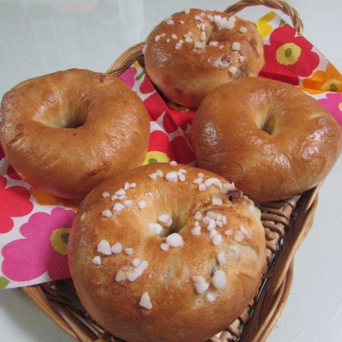久しぶりにベーグルを焼きました(#^^#) プレーンとクランベリー&クリームチーズの2種類です。 ベーグルは最後の茹でる作業が面倒で・・・なかなか焼いていませんでしたが・・・焼きたてを食べてみると美味しくて~また、焼こうかな!!と言う気持ちになりました(#^^#)