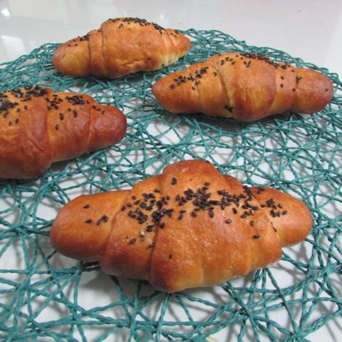 今日焼いたパンは、塩バターロール。 フワフワ生地にバターがたっぷりしみ込んでいます。仕上げに、岩塩&黒ごまをふりかけて~美味しい(#^^#)