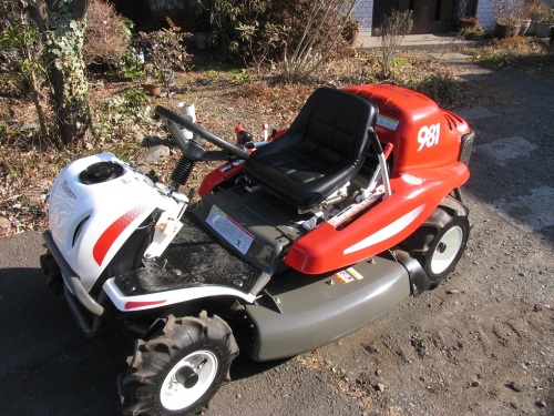 昨日は寒い一日でしたが今日は暖かい、ジジイには気温の変化が非常につらい。写真ですが乗用の草刈り機です。私の父の時代は大カマで草を刈っていた時代もありますが、その後エンジン刈り払機、ハンマーナイフ(自走式で1m位の幅で草刈ができる)その後現在の乗用となりました。随分楽になったと思われますが炎天下の草刈は大変な仕事です、熱中症の手前は常時、前の草刈機は人間の前に熱中症(オーバーヒート)で故障。新古車でお買い得品を消費税値上げ前にゲットしたわけであります。昨日農機具屋さんが届けてくれました。早速試運転し写真にパチリ、これで今年の草刈は随分楽になったと一安心。ジジイの仕事は草刈ではありません、ジジイは山へ草刈、昔話です。ジジイノ仕事は一応電気屋ですよ?。