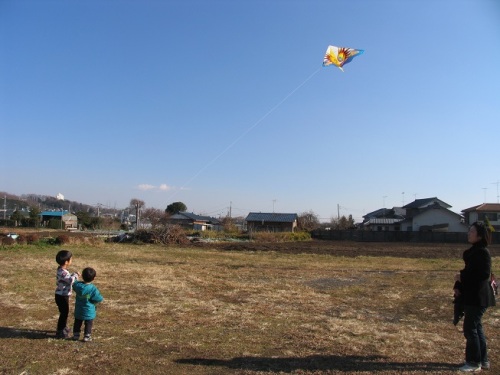 ようやく正月にひいた風邪が快方に向かってきたようだ。ジジイは風邪で翌日までグズグズしたことは初めてで堪えた。柿の写真が特効薬ではなかったと思うが?写真は正月撮ったもので近くの空き地で凧揚げをしている孫の様子、風邪が弱くやっと揚がった瞬間、孫達の喜ぶ姿にジジイも大喜びしシャッターを切ったところ。ジジイには孫たちが一番の特効薬。これで元気になれるぞ