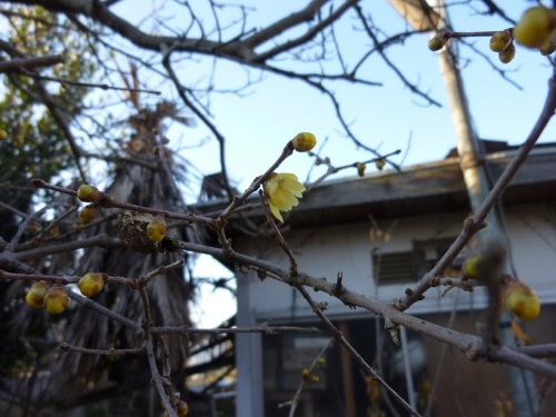 やっと一輪咲きました。まだ良い香りはしませんが2,3日すると良い香りがしてくる事でしょう。小さな花でジジイのような老眼にはなかなか旨く撮れませんでした。その上いつも手振れがある、接写は特にきつい。まー年相応でしょうか? 蝋梅はあまり有名ではないのでジジイも知らなかったのですが女房がだいぶ前近所から頂いてきたものです。立春のころ良い匂いが漂って来ます。