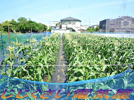 2025年5月29日木曜日こんにちはトウモロコシ畑と電気柵写真撮ってきました電気柵は5年ほど前から設置しハクビシン対策をしてきました今年は他にイノシシやシカ、野猿も出没するようになり追加対策をする羽目になりましたしかし賢いサルを防ぐのは並大抵ではなさそうです昨日は午前中高校の同級生が予定通り尋ねてくれました先日のクラス会の写真加工したら古い写真のカラー化して置いたのを持ち帰っていただきました足らないものは急遽プリントでした友人の帰宅後野良着に着替え玉ねぎ領域とスイカ領域繋げ一つにして囲いました理由は玉ねぎがまもなく収穫時期で収穫後はスイカの種まきします玉ねぎを収穫した場所にただスイカの種をまくだけ肥料は玉ねぎ用の余りで十二分です昨日は古い畳2枚持ってきたので近々に解体して大玉スイカ黄金羅王種周りや小玉スイカ周りにそれぞれ敷き込みます余った時間で草むしり、さやえんどうの種の収集昨暫くぶりぶりの晴れ間で気温上昇、暑いくらいの日でした昨日キュウリ4本初収穫写真撮る前に食べてしまいました初物は美味ですね~、スーパーで買ったキュウリとは大違いみずみずしく新鮮、勿論安全安心ですトウモロコシ電気柵設置し通電中です下4段はハクビシン対策プラス色違いのワイヤーがイノシシなどの対策一番上のワイヤーとさらにその上は猿用対策です手前が5月上旬の種まき、一番奥が3月14日種蒔きです3月13日に種まきしたトウモロコシはだいぶ育ちました写真左が早めに種蒔き右に行くほど遅蒔きです上部の釣り糸はカラス除けです
