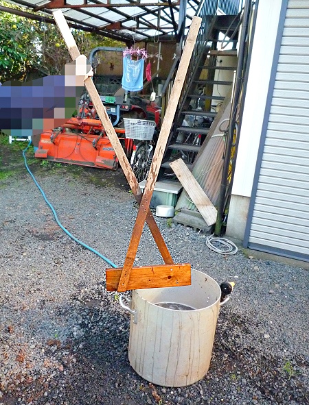洗い桶は寸胴鍋を知人より頂戴して活用しています