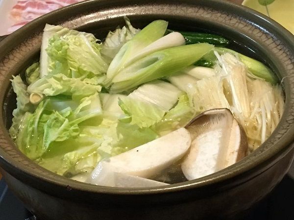 そして夜は水炊き。野菜たっぷりの下には鶏肉、豚肉、白身魚、豆腐が入って栄養満点&お腹いっぱいですぺろり