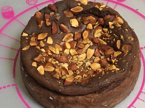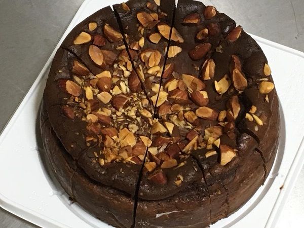 ココア&ナッツ・ベイクドチーズケーキの仕上げ。こちらも本日発送