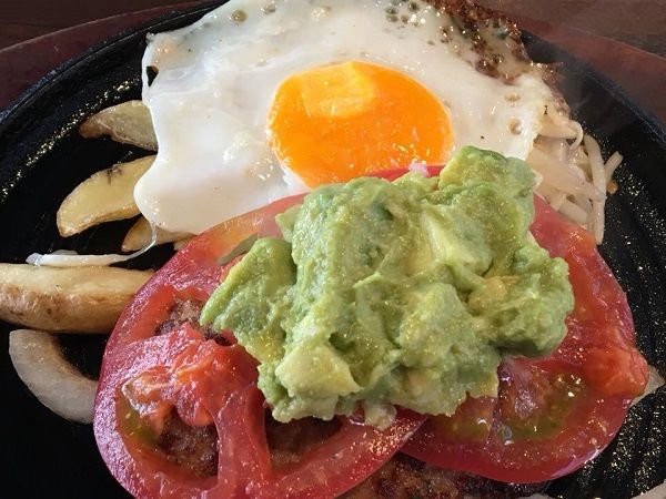は外食(​ レッフェル ​でアボカドハンバーグ・目玉焼きトッピング)