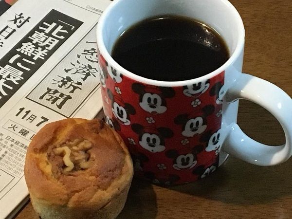 暦の上では今日は立冬。ですがお天気はまだまだ秋晴れ手書きハート。週の前半火曜日、いつものブラックコーヒーとくるみ入りおからマフィンでスタートですウィンク