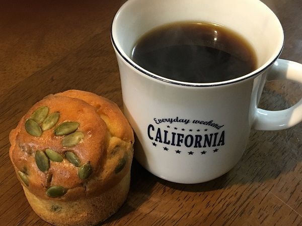 朝:ブラックコーヒー&​ クリームチーズ大豆粉マフィン