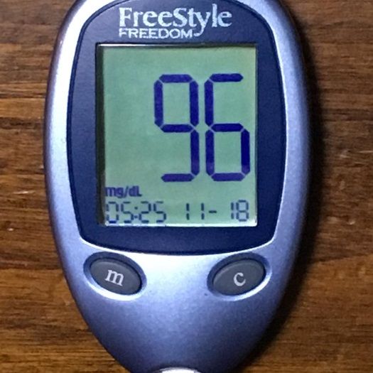 さて、今朝の血糖値はやや高め、2桁ギリギリとなりました。