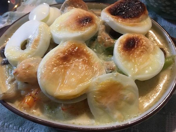 そして夜はクリームグラタンと具沢山コンソメスープぺろり