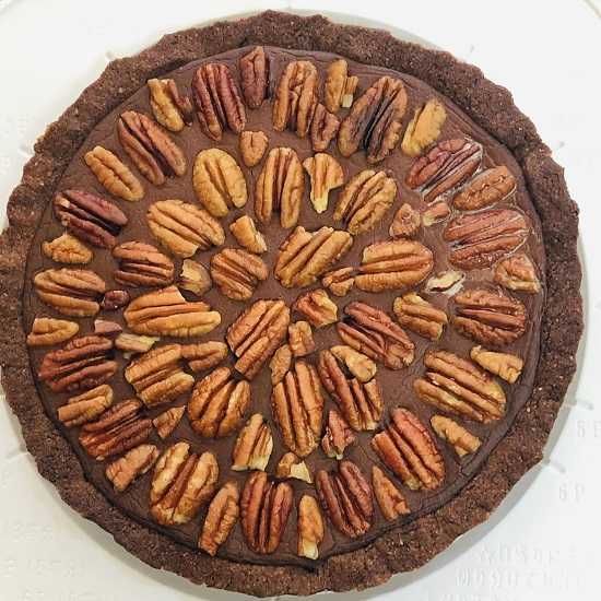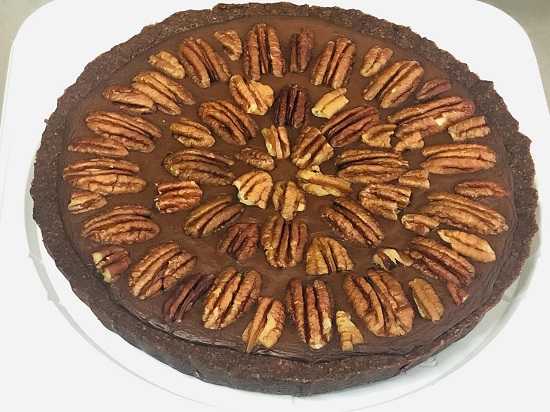 低糖質ライフが手間暇かけて完成させた自信作の ショコラタルト ペカンナッツ をたっぷりトッピング。サイズは大型6号サイズ、冷凍ホールでお届けしますウィンク