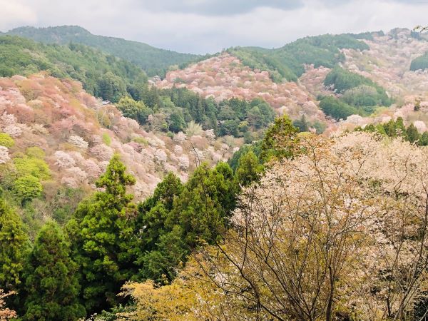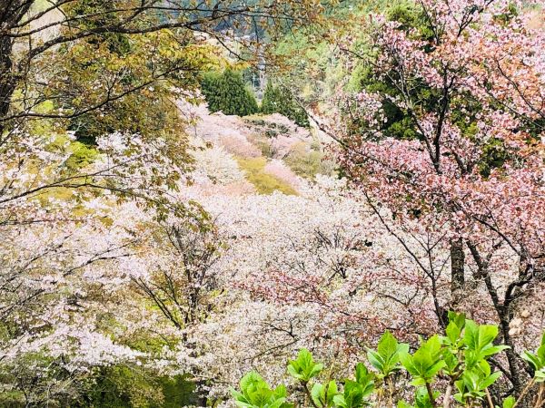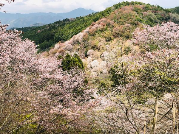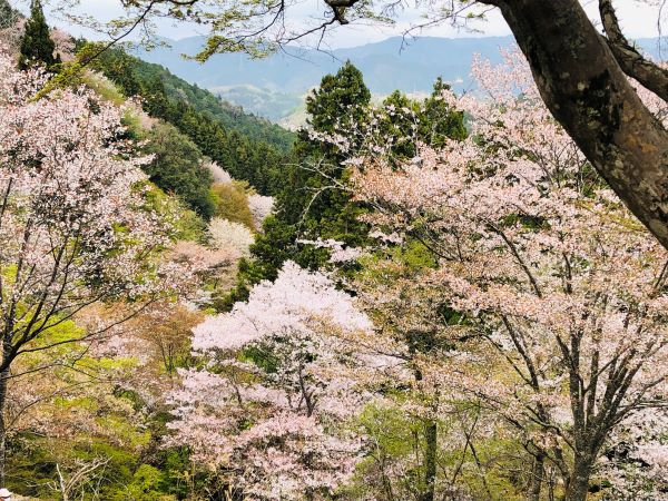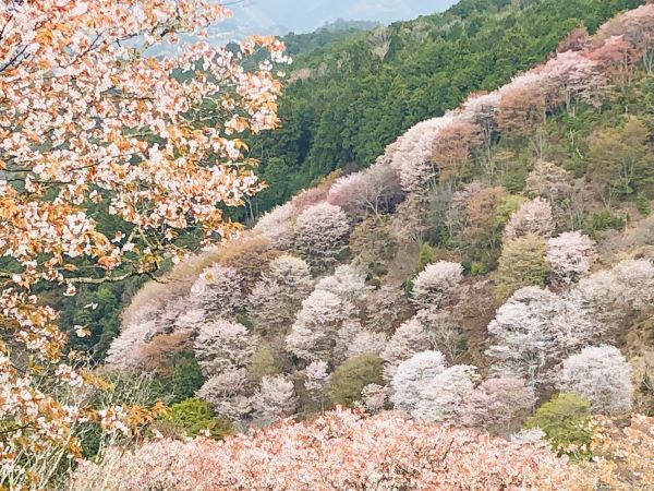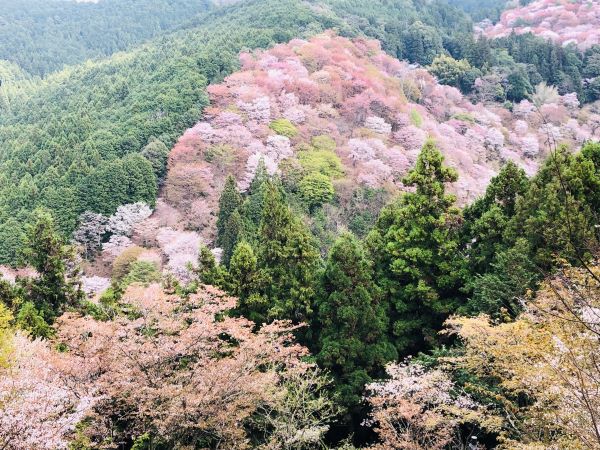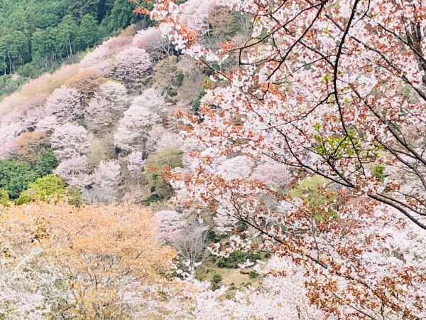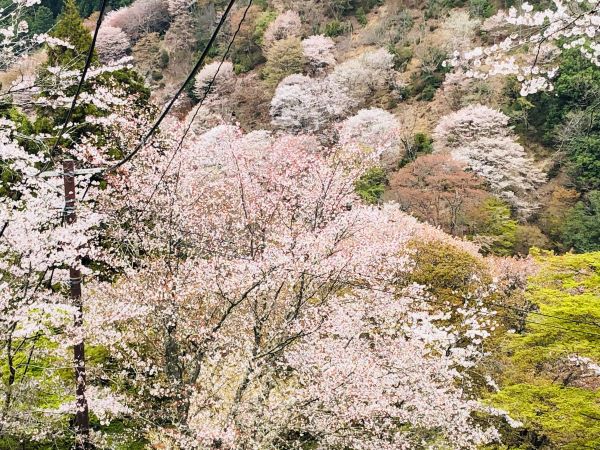 吉野山の桜は一目千本と言われ、山肌に密集して咲いているのが特徴。場所ごとに下千本、中千本、上千本、奥千本の4か所に密集しているということです。