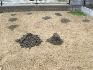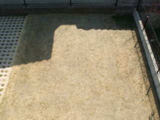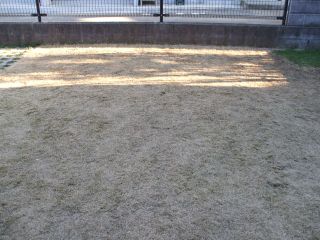 西洋芝部分に目土が必要かは解りませんがいちよう 西洋芝へも目土を入れました日が当たらないので、目土を入れても活性化は、期待できませんが張替えを考えた時に、入れておいた方が良いかなと・・・。どうなんでしょうね・・・?
