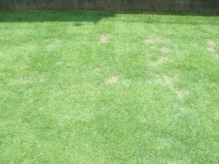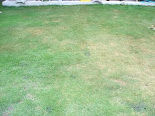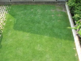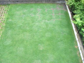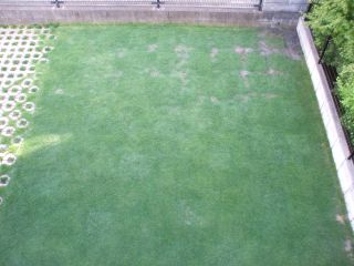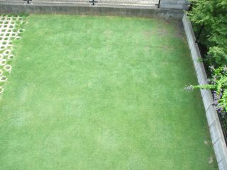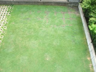 久しぶりに南側から北側の芝生面を撮りました↓高温により日当たりの良い高麗芝面がかなりのダメージを受けています色も変り心配ですが、今日も昨日に続き 夕方から少量ですが、雨が降っております。これで、回復してくれないかな・・・。