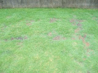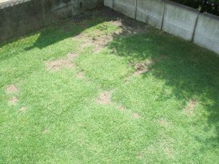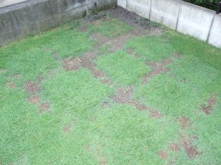 北側の日当たりの良い部分ですが・・・。↓高麗芝が、枯れてきました^^;病気だろうか・・・?
