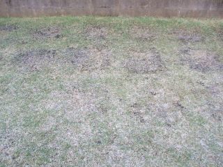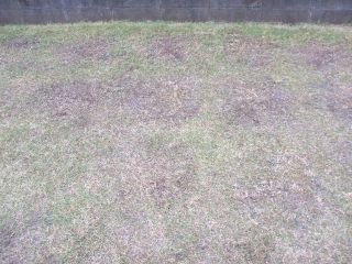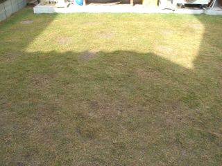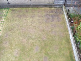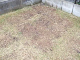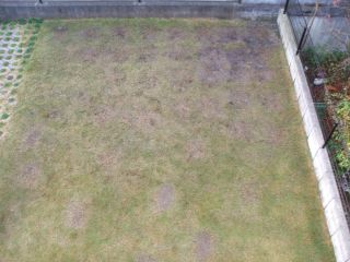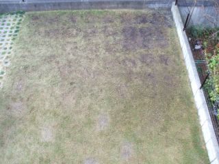 南西部の画像です↓ブルーシートの跡が残ったままです高麗芝もTM9もボロボロです・・・。この場所を見ながら春からどうしようか色々考えています。