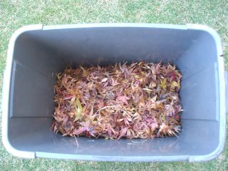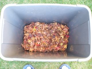 前回の日曜日に拾った落ち葉です↓芝刈り後に刈りカスを、いつも捨てているゴミ箱で1/4の量です今朝の芝庭にも、昨日の雨で、多くの落ち葉が・・・。この画像以上の量が落ちているように感じますが今回は、ブルーシートと言う強い味方が・・・wどれだけの量になるのでしょう・・・?