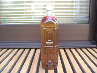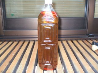 木酢液に唐辛子を入れて2週間経過しました。↓まだまだ多くの唐辛子が浮いたまま・・・。毎日 ガシャガシャと振ったりしているのですがなかなか沈んでくれません。しばらくは、使えませんね後どれくらいかかるやら・・・。