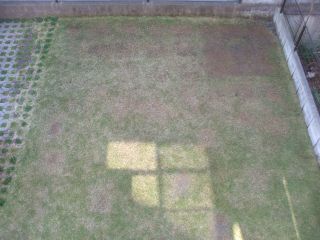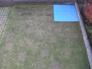 日曜日の芝生画像です↓先週の日曜日の芝生画像です↓ ブルーシートの跡がくっきりと・・・。失敗でした><今晩から又雨・・・。跡は消えるでしょうか・・・。