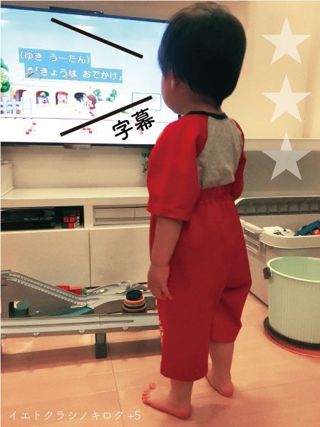 兄からのお下がりのパジャマを着る弟くん^ ^ハイウエストで大きめのパジャマを着るこのアンバランスなうしろ姿がたまらない 笑我が家。。。いつも字幕ありでテレビ見てます(⌒-⌒; )小学校4年生のお兄ちゃんが赤ちゃんの時から。。。一人目なのですごく神経質になって育児をしていて 汗お昼寝した時や、夜寝た後テレビを見るときに、起こさないように起こさないように。。。と小さい音字幕ありでテレビをも始めたのがきっかけです(⌒-⌒; )今ではそんな生活に慣れて、ほぼ字幕ありでテレビを見ている我が家(⌒-⌒; )ニュースやバラエティなどリアルタイムで見るときは字幕なしですが、ほとんど字幕ありで見てます。育児あるあるなのか。。。我が家だけなのか。。。笑でも!でも!字幕あり生活で良かったことが( ´ ▽ ` )ノいつも字幕ありでテレビを見せていたので、ひらがなやカタカナを教えた覚えがないのに!いつの間にか読めるようになってたんです!結構早い時期からだったと思う。。。保育園の先生にどうやってこんなに早くひらがなが読めるようになったんですか?と聞かれたので。。。たぶん早い?今、2歳の弟くんももちろん字幕ありで見てます( ´ ▽ ` )ノ効果があるかどうかは自信がないけど。。。試してみるのもいいかな?と思って書いてみました( ´ ▽ ` )ノにほんブログ村にほんブログ村にほんブログ村* 無印良品( MUJI )との生活 *