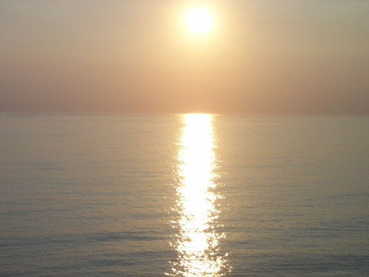 今日の景色:「お寺から見える夕日」 夕日が有名なお寺からの夕日です。おお、うつくしい。う~~ん、ゆったりしていますね。