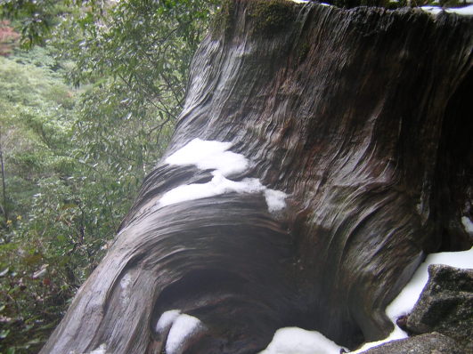 今日の屋久島の景色:「切り株」 おおお~!すごい切り株です。光っています。この曲線、お見事です。