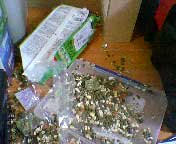 突然ですが下の写真は何の写真でしょう。。。正解は、くるみのえさがその辺にまき散らされているところでしたぁ(^▽^)/なんてのん気に言っている場合じゃなかったんです。家に帰ってきてすぐこの異変に気が付きました(; ̄Д ̄)なんじゃ?勘の鋭い方はお気付きでしょう、家に泥棒が入ったのです(ウソ)くるみがケージから脱走してしまったのです。新しいお家は扉が2ヶ所あって正面の小窓と上の大きな1枚戸ですどうやらくるみは天井の1枚戸から脱走したようです。確かに簡単には開くけど(人には)くるみが開けてしまうなんてw( ▼o▼ )wえさの袋、ゴミ袋、ティッシュ、電気関係のコード、服等その他多数かなりやられてしまいました・・・ 左:ビニール袋をカリカリされた残骸です。右:座椅子の毛をカリカリされた残骸です。いずれも、カリカリ後の破片がそこらじゅうに飛び散っています。もちろん携帯のコードなんてくるみちゃんには朝飯前なんです。。。僕はショックで日記も書かずに、ふて寝しました(脱走は昨日の話)とりあえずくるみは前の押入れ収納ケースに入れています。今後の対策を検討中です。は~メッチャ疲れたよぉ(ノ_-;)ハア…クリックするとblogランキングに投票されます。可哀想だね。と思った方は1票を