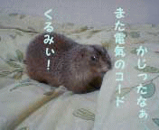 今日は週に一度と決めている、お風呂の日です。先週は気持ちよく水浴びしていたのに…今日はご機嫌斜めのようですね。浴槽を走り回るくるみ。興奮してしまったのか、コロンコロンとお尻から丸い物体が…くるみちゃんここはトイレじゃないですよ…僕は思い出しました、知り合いの人で昔プレーリードッグを飼っていた人が『時々走りながらコロンとすることがあるよ』って言っていた事を。ふと気が付けば、浴槽には黒く丸いものが5、6粒。僕は何事もなかったようにシャワーで流し、今日もくるみは綺麗になりました。クリックするとblogランキングに投票されます