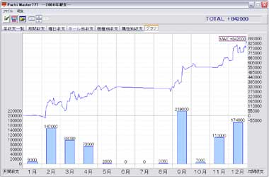 僕にはSAXの他にもうひとつ趣味があります、下の写真を見てわかる人はわかりますよね?そう『パチスロ』です。パチスロって聞いて『ギャンブル、破産だね』なんて思う方もいらっしゃるのでは?そんなことはありません!攻めるところをきちんと攻めて引くところはスパッと引く。これだけで意外と勝てます。ヽ(=´▽`=)ノ実は去年からフリーソフトを使って収支を付けています。----2004年収支----総投資 4000000円 換金 4842000円トータル +842000円 月平均 +70166円成績 67勝50敗4分 勝率 57%注:投資4百万円は実際に持っている訳ではありませんよ。4004年は月単位でマイナスになった月はありませんでした。どうです?パチスロって勝てるんです(^▽^)/っと言いながら今年の収支は…----2005年4月28日現在収支----総投資 1259000円 換金 1244000円トータル -15000円 月平均 -3750円成績 14勝21敗1分 勝率 40%今年は初月から大敗を喫する。先が思いやられる(ノ◇≦。) ビェーン!!このように僕は『くるみ』『SAX』『パチスロ』等など充実した日々を送っているのでした。全く興味のない方、申し訳ありませんごめん隊----ちょっといい写真---- パチスロだよ黄門ちゃま(平和)BIGで0パンしたときの写真です。0パン?と思う方、詳しいことを話すと、とても長くなってしまうので(え?聞きたくない?)説明しませんが、要するにありえないことが起きたので携帯で撮りました(。>0<。)普段は400枚(8000円)出るものが125枚しか出なかったんです・・・クリックするとblogランキングに投票されます。サボった分だけ転落24位(ρ゚∩゚) グスン