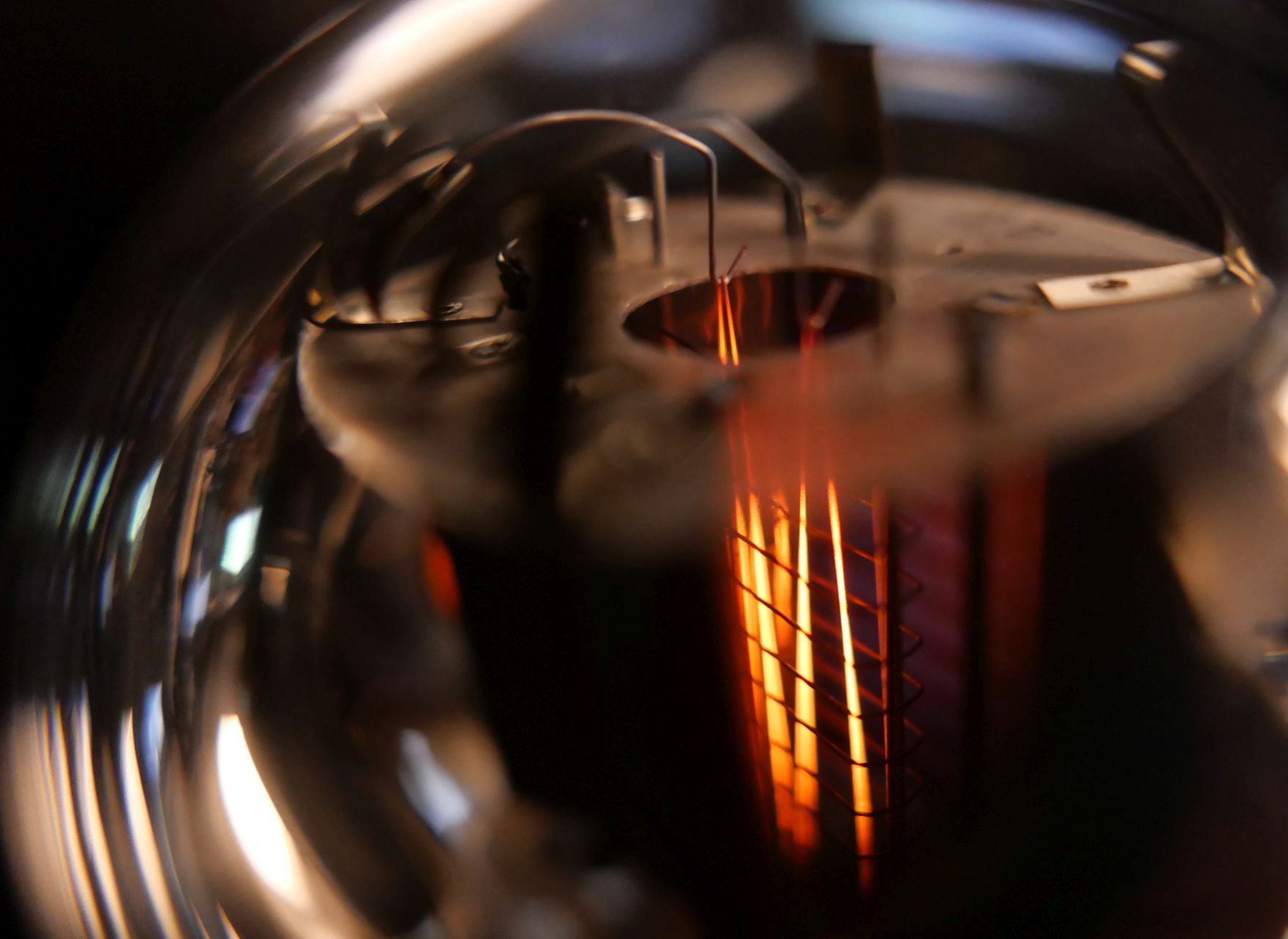 Full Music製205D(UXソケットの205D-Lです)は二枚のプレートの間にグリッドとフィラメントが入っている単純な構造です。