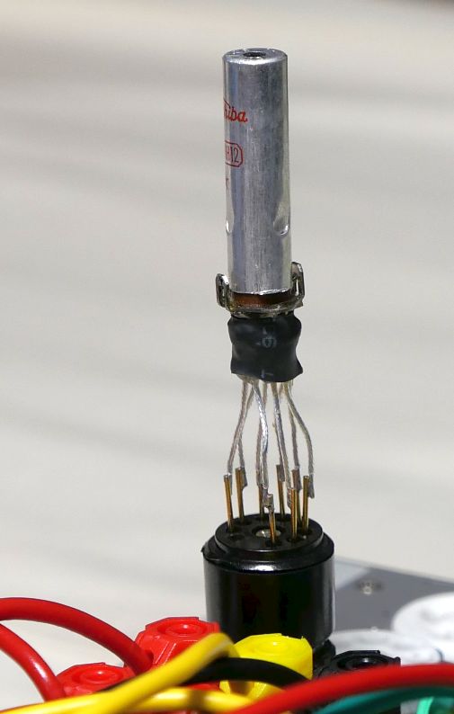 見ての通り、非常に細長い管で特殊な8ピンソケットは、サブミニチュア管用8ピンのソケットが流用できます。(そのかわり球のアルミケースのツメは切り落とす必要があります)