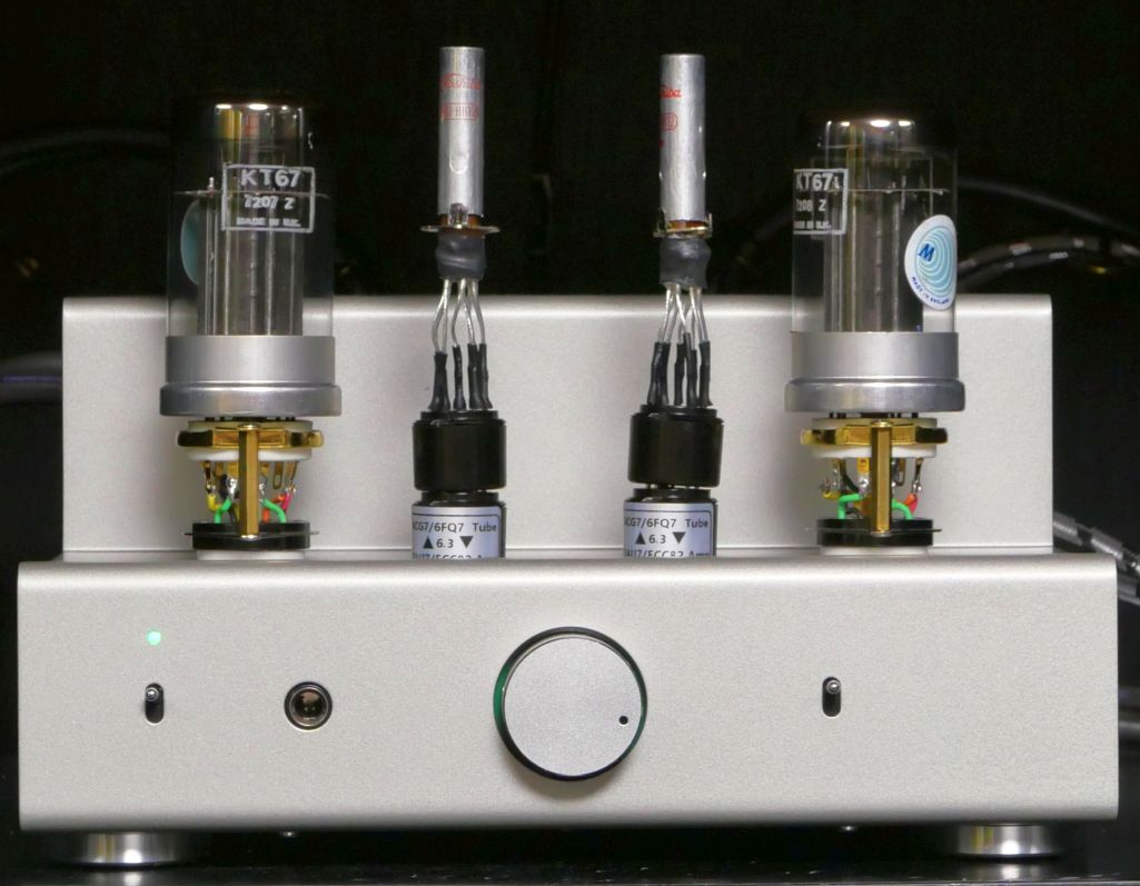 自作アダプタのままでは6FQ7と同じ配列なので、更に6FQ7→12AU7の6.3V接続のアダプタを咬ませてあります。
