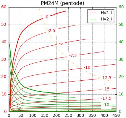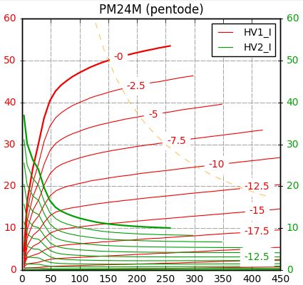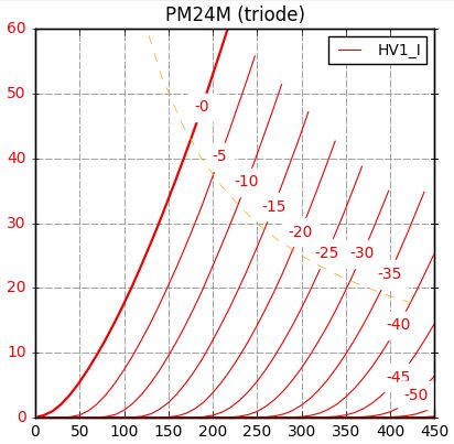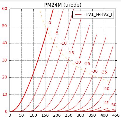 三結時のrpとgmに関しては LK4110/E408N に近いと思いますが、プレート損失が低いので、PM24Mの動作に合わせてあげる(低い出力で我慢する)なら1台のアンプで済みそうです。