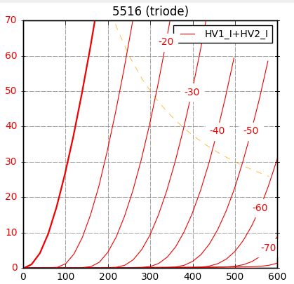 さっそくetracerで三結特性を測定しましょう。(ビーム管ですが、私が三結が好きなので省略します)