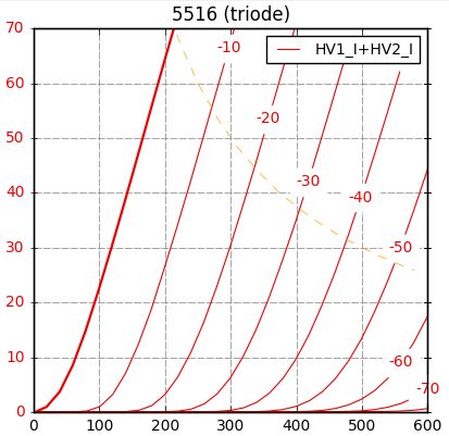 それから、高rpな球でEg1=0VのIpカーブは相当寝ています。ということは280VのEpでの動作では出力が殆どとれません。でも高能率のスピーカーで静かに音楽を聴くなら十分だと思います。