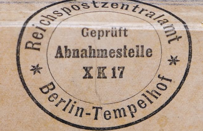 「ベルリン・テンペルホーフ 帝国中央郵便局 チェック済み」というシール。