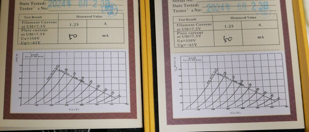 フィラメント7.5Vは7Vに落とした方が落ち着いていて良い特性の気がします。このあたりはメーカーの考え方かとは思いますが....。まさか客に「最初は7.0Vで、古くなるにつれ少しずつ電圧を上げて下さい」とは言えませんものね。(笑)