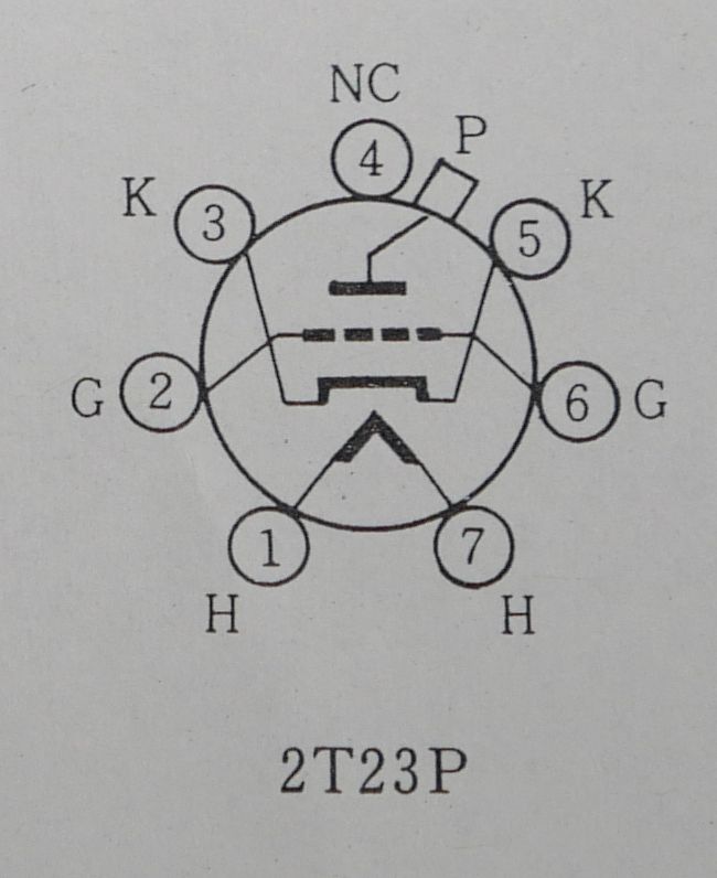 先日の 2T12P 同様に、プレートの中にカソードとグリッドが2組ある構造です。