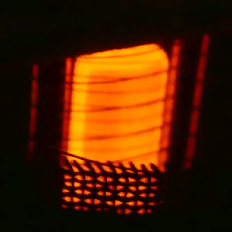 ヒーターを点灯するとメッシュプレートであることがわかります。