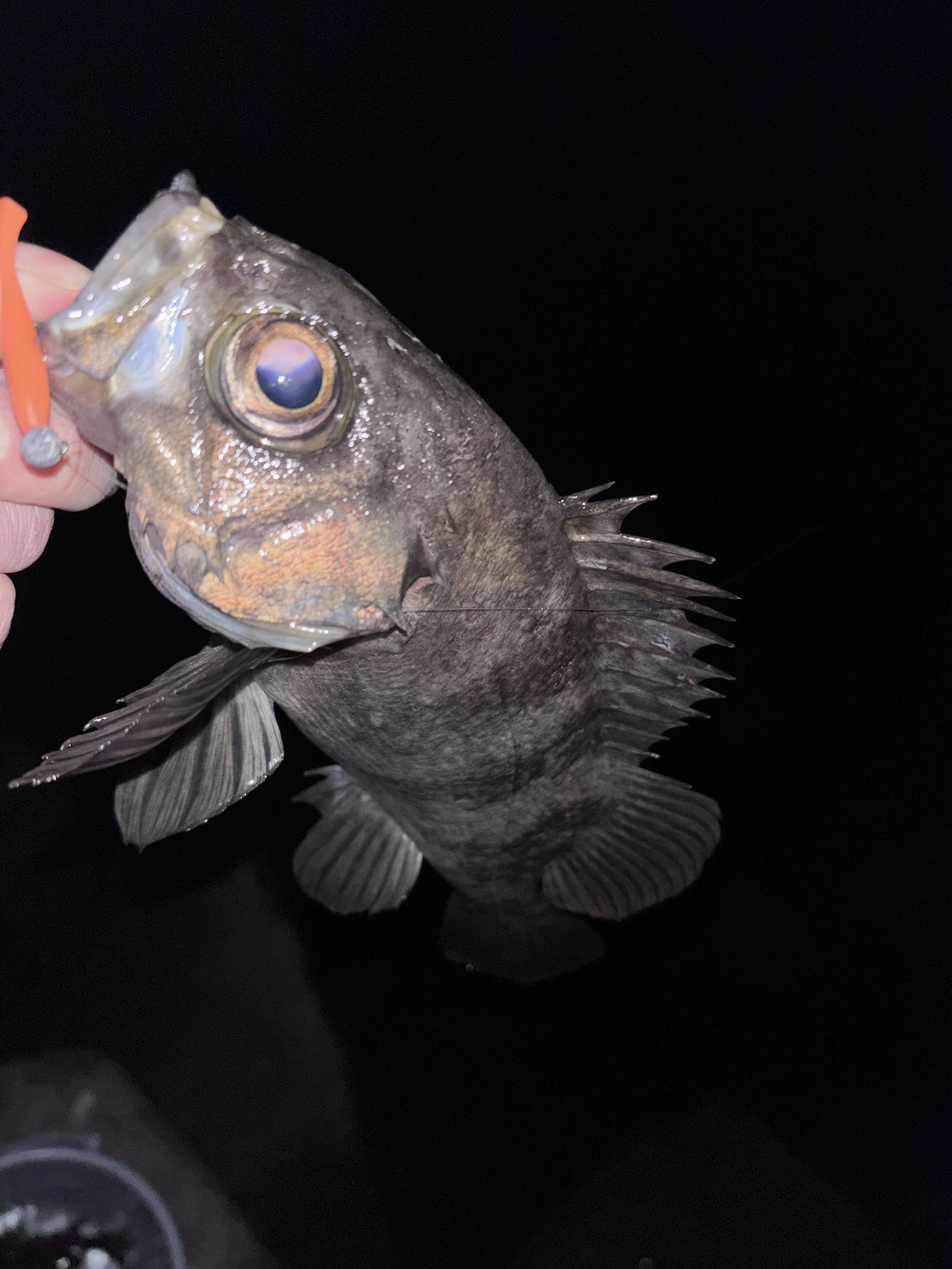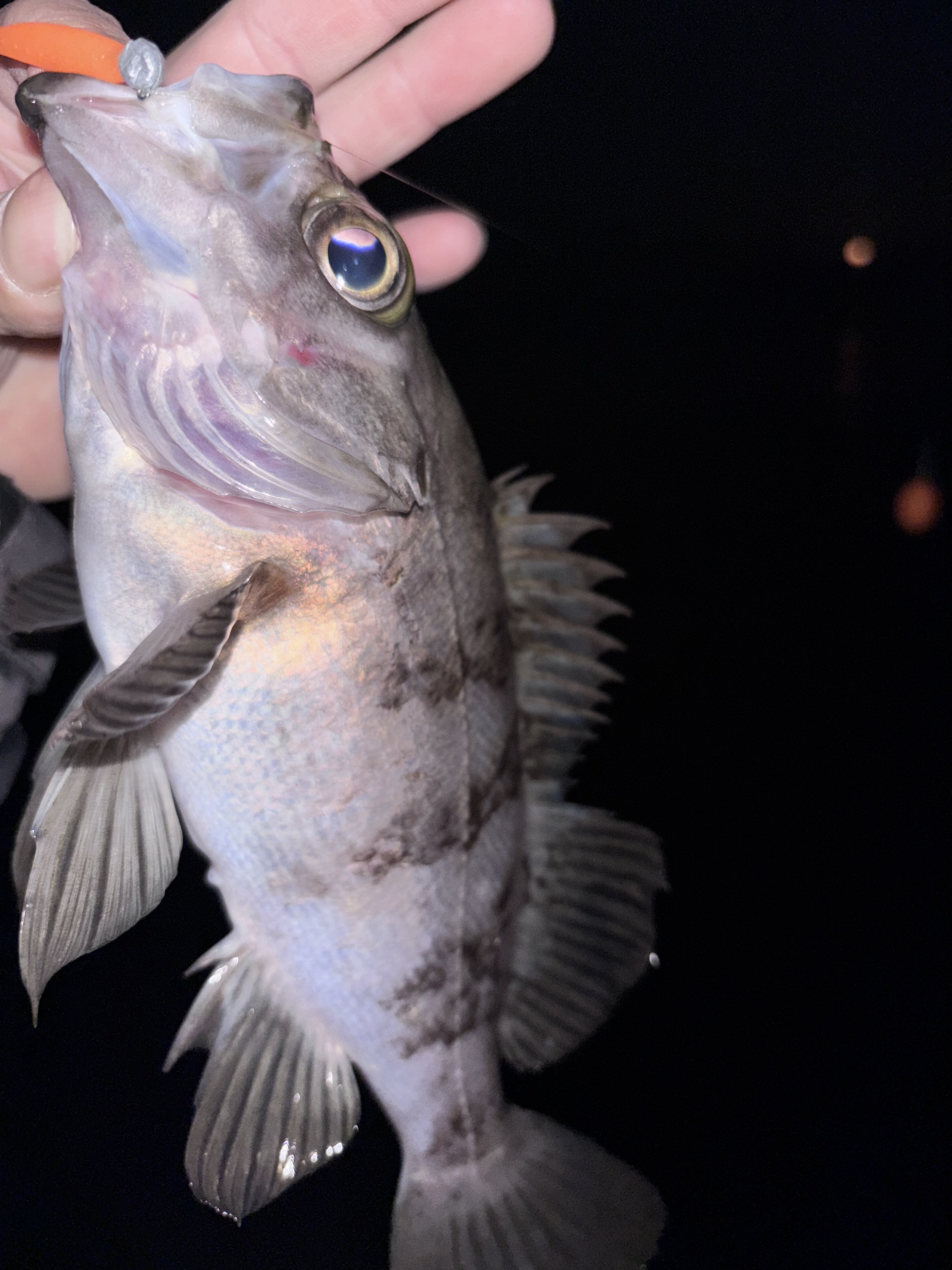 今日は用事があり短時間メバル今日のポイントは浅いのでフロートメバル幸先よくゲット( *˙ω˙*)و グッ!さらにゲット(σ´∀`)σゲッチュ♡珍客も🤣🤣トータル4匹で終了〜使用タックルエメラルダスエアー84ml~sルビアス2500s自作ジグヘッド月下美人ビームフィッシュ