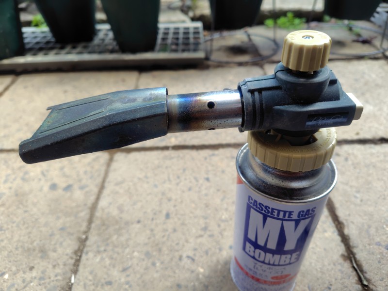 クリローの古葉取りなどでハサミを使う際、消毒のために今まではライターでちまちま炙っていたのですが、上級者御用達の消毒液「ビストロン」も良いかな…と真剣に検討していました。。。が!コスパに目をつぶったとしても、10分以上つけ置きというのはいただけません。そこで思い出したのがハンディバーナーです。17年前に古土を焼くために購入して3年ほど使いましたが、その後は物置の奥に忘れ去られていました。😅これなら即効性もあって効率的です。早速、カセットボンベに取り付けて、いざスイッチオン!しかし…点火せず。😓結局、新しいバーナーを買いました。これでハサミの消毒は完璧です。✌早速、クリローのお手入れBeforeAfter一株ごとにハサミを炙りながら作業できて古葉取りが楽になりました。ハサミ消毒はバーナー一択でキマリです。😄