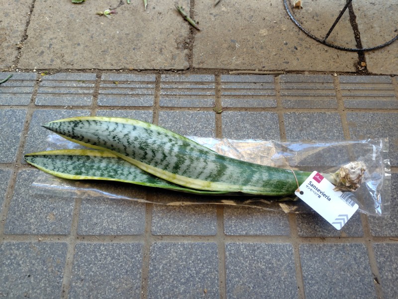 昨年暮れにダイソーでサンスベリアの根無し葉を買って来たものの、2ヶ月以上放置して枯らしてしまったばかりですが、、性懲りもなく、また買ってしまいました。😅再チャレンジはもう少し暖かくなってからと思っていましたが、この葉だけ異様にデカかったので、つい手に取ってお持ち帰りしてしまいました。今回は放置せず即植え付けました。それにしても、これで100円とは信じられません。土に挿しただけで水やりはしないで春を待ちます。今度こそリベンジなるか?