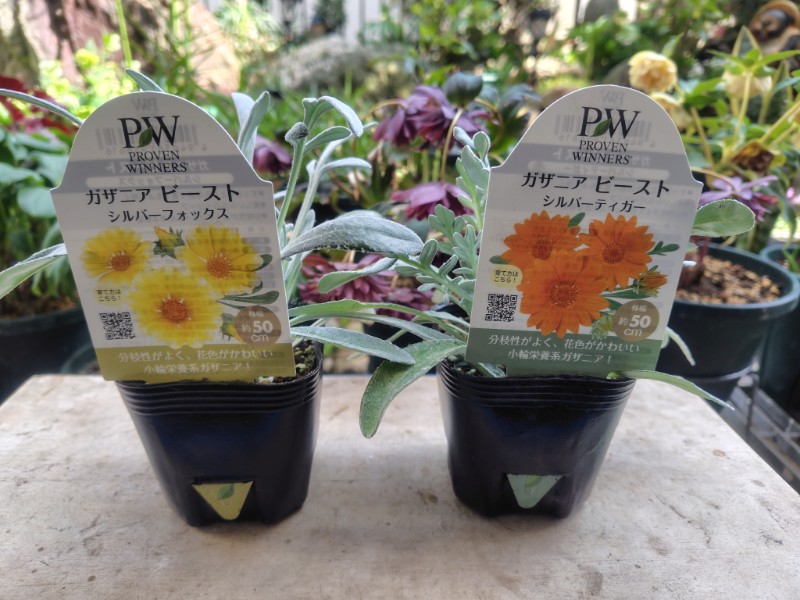 PWの花苗で面白そうなものがあったので購入しました。ガザニア ビースト「シルバーフォックス」「シルバーティガー」各348円3品種あるうちシルバーリーフの2品種を選びましたが、PW苗生産農家の某ユーチューバーが、「シルバーティガーは弱いのでやめたほうがいい」と言っていました。(私がハクサンの社員だったらこいつは出禁にするでしょうw)シルバーフォックスの花芽植え付けはお陽さま大好きなガザニアなので、宿根草エリアのど真ん中にセットしましたが、この時期は芽が出ていない「地雷」があちこちに埋まっているので神経を使いました。宿根草エリアのこれからが楽しみです。😄