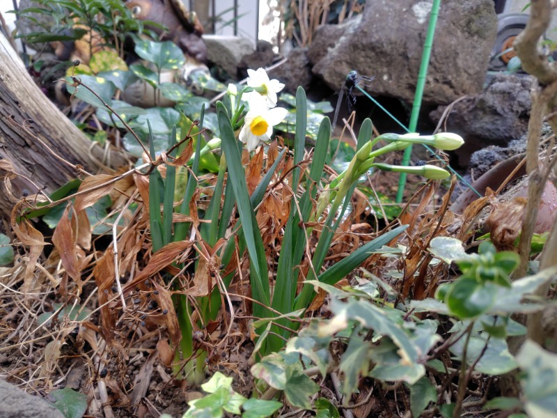 昨年暮れにセール品球根で購入した寒咲日本水仙が開花しました。🌼葉も花茎もしっかりしており、13年前の自立出来なかったヘボ水仙とは大違いです。この場所が合っていたので安住の地で末永く…と言いたいところですが、来シーズンはもっと特別な場所に植えてあげようと思っています。✨️それが吉と出るか凶と出るかは1年後のお楽しみです。😄