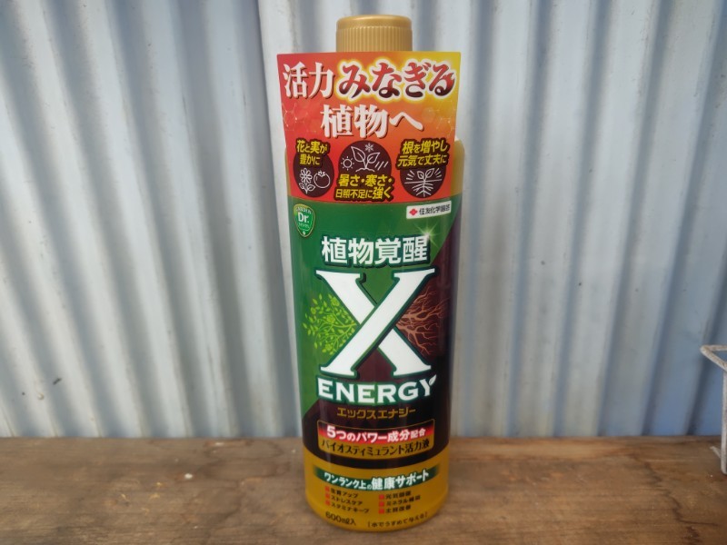 住友化学園芸から新発売されたバイオスティミュラント活力剤「X-ENERGY(エックスエナジー)を買ってみました。Amazonで当初825円でしたが購入時は707円でした。実店舗での最安値は税抜698円でした。通常希釈は100倍なのでリキダスと比べてコスパは悪いのですが、その分効き目を期待して人柱になる決心をしました。😅その実験台第1号は、今シーズン花無しの危機に瀕している加藤クリロー三姉妹です。こちらは根が弱っていることを予想して、まず植え付け時の希釈1000倍で与えてみました。今年の厳しい夏越しに向けてX-ENERGYでしっかり体力をつけたいと思います。