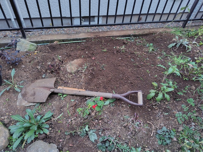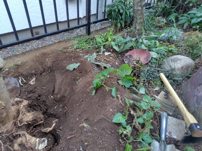周りの宿根草やアジサイの小株を多数踏みつけて安否不明にしてしまいました。😭