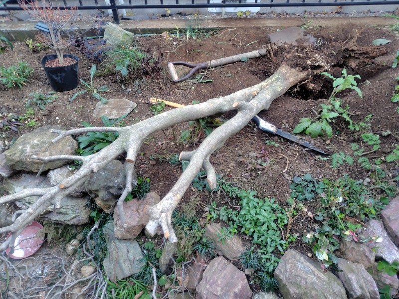 ドウダンツツジの古株を抜根