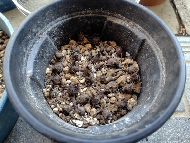 このままでは今年のアッツ桜の開花は期待出来ないので、球根を掘り上げて植え替えることにしました。