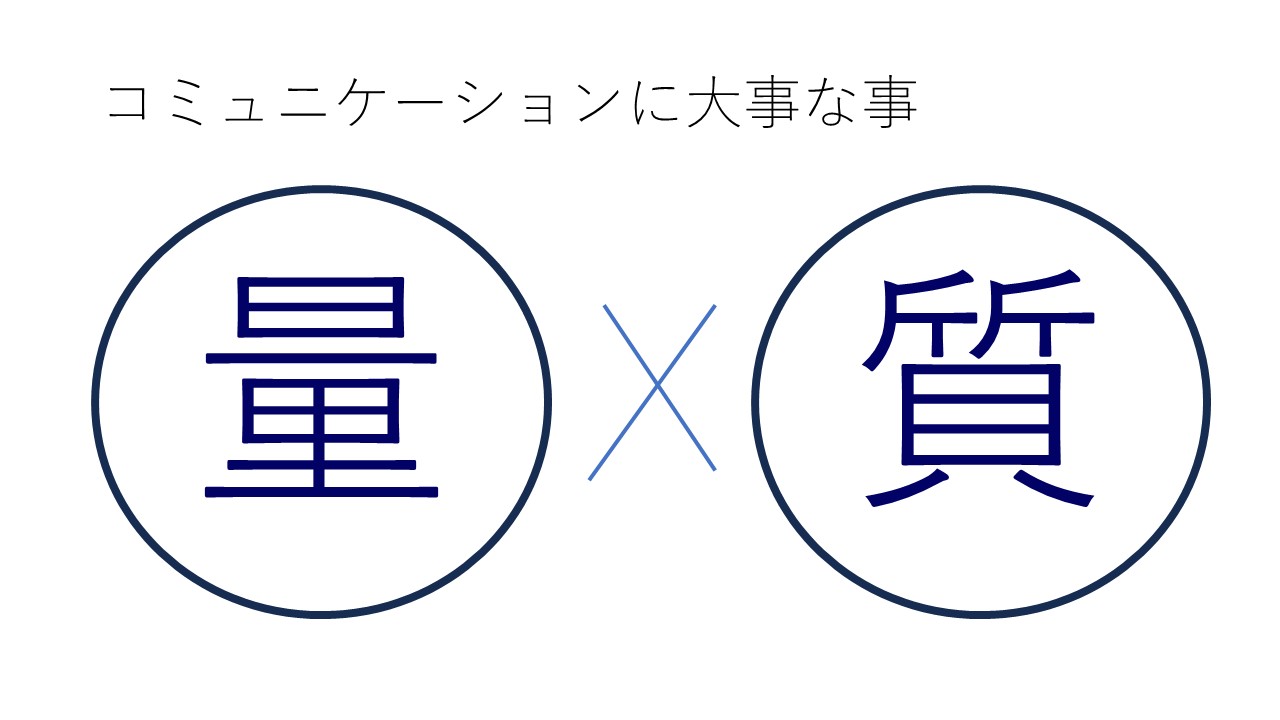 本部で働きだして数年になります。ありがたい事に事業所の懇親会等に声を掛けていただく事もあります。さすがに、全部の事業所の懇親会等に参加する事は難しい側面もあるので、せめて自分の担当の事業所だけは参加したいと思っています。1個前の投稿でも触れましたが、コミュニケーションは大切と思っていますが、やはり現場で常に仕事をしている訳ではないので、コミュニケーションとしては「質」はどうにか担保できたとしても「量」の部分が絶対的に不足しています。以前も同じような事を書きましたが、コミュニケーションは下記の様なイメージをもっています。大事なのは「量」×「質」は掛け算だと思っている事。量が全然少なかったらコミュニケーションとしては出来てないと思いますし、逆に量がどれだけ多くても質が担保出来てないといけないと思っていますし、特に質に関しては、マイナスだった場合に、量が多ければ多いほど結果マイナスになるとも思っています。ただ、量もあり質もあれば最強です。この絶対的な量を担保する為に、普段なかなか現場と関われない状況ではありますが、担当の事業所の懇親会等はできるだけいく様にしています。本当は仕事の話も含めて暑苦しく語りたい人ではありますが、楽しくワイワイの懇親会でも、量という意味では意味もあると思っています。なので、量は担保していきたいとは思っています。先日も某事業所の新人歓迎会に参加してきました。普段なかなか会話も出来ていませんが、スタッフ達と話ができて、一緒の空間を共有できてよかったと思っています。体は一つしかないので、なかなか難しい側面もありますが、できるだけ事業所にも足を運びたいという気持ちだけは有ります。⇒実行としては不足していると自負はあります・・・。汗逆に量と質、特に量が担保されている状況であれば、今度は質を上げる所を重視しないといけないと思います。一回一回を大切にして、伝え方や伝える内容等、常に工夫して、考えて、フィードバックしてと前項で書いている事と同じような事をコミュニケーションにおいてもしないといけないと思っています。視覚イメージが一番分かりやすいと思うので、今回も図を用いて書いています。これが最善か分かりませんが、更に良くするために、良くなる為にやっていく必要があると思っています。お知らせいつも当Blogをご覧頂きありがとうございます!★いきいきリハビリケアでは、共に働く仲間を募集しています★~仕事が気になる方、求職中の方はこちらから~いきいきリハビリケア リクルート(求人)サイト★会社案内(会社の事が気になった方はこちら)★〜いきいきリハビリケア公式サイト〜★いきいきリハビリケアの仲間もBlogを書いています★~スタッフ仲間のBlogはこちらから~スタッフ仲間のBlog★いきいきリハビリクリニックで内科・リハビリテーション科の診察・リハビリが出来ます★※90分のデイケアもあり個別対応でリハビリ出来る。~風邪や高血圧、膝痛・腰痛等で受診・リハビリ希望される方はこちら~いきいきリハビリクリニックHPアクセスお待ちしております!